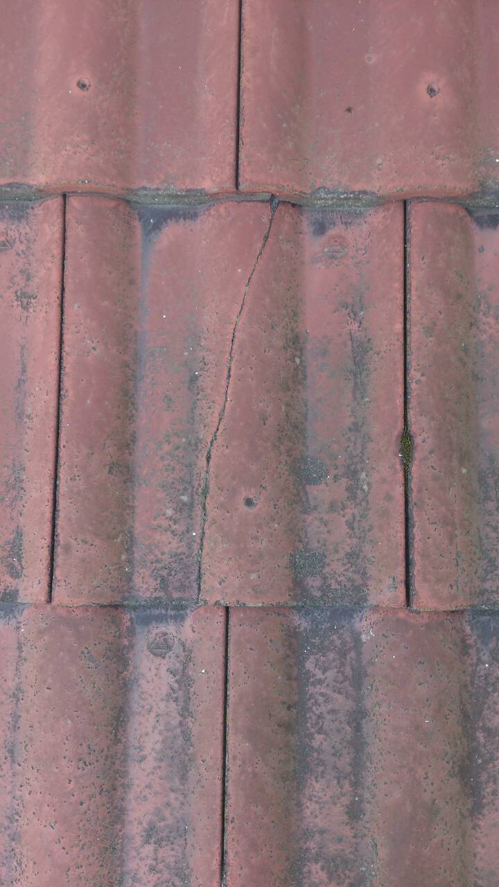 ①のようにあまり古くない瓦を葺いたような屋根の場合②瓦が割れていても意外に家の中にまで雨水が入らない場合があります。