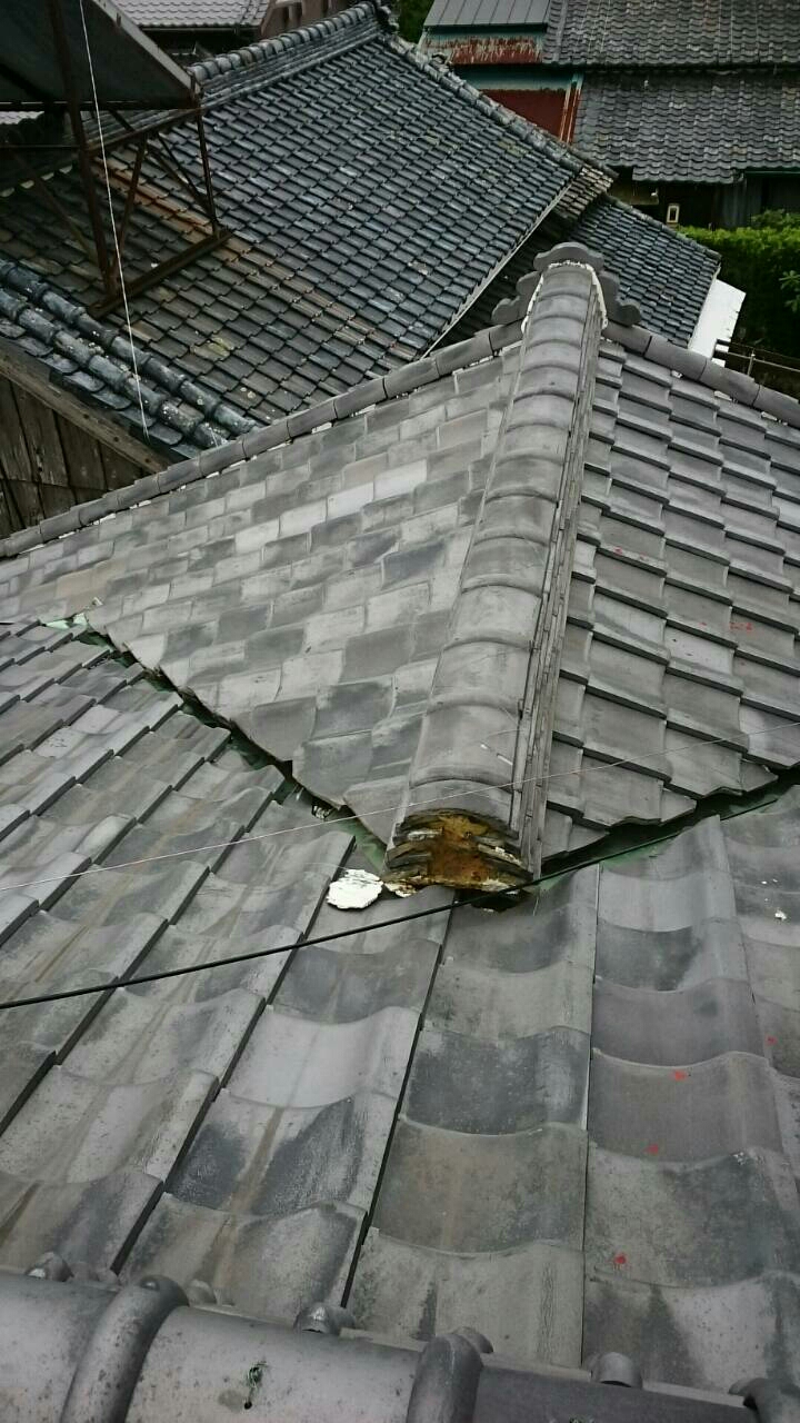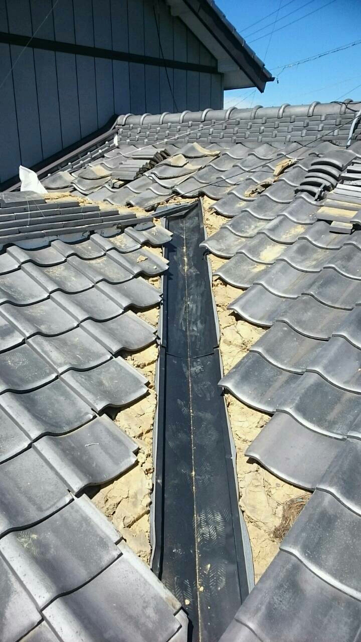 浜北区 雨漏り工事 谷樋交換工事・鬼瓦接着工事