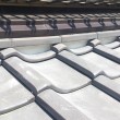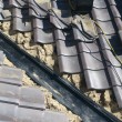 ①既存の銅の谷板金をはずすために、まわりの平瓦と頂上の棟瓦を一度はずします。