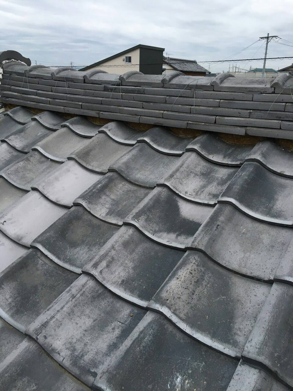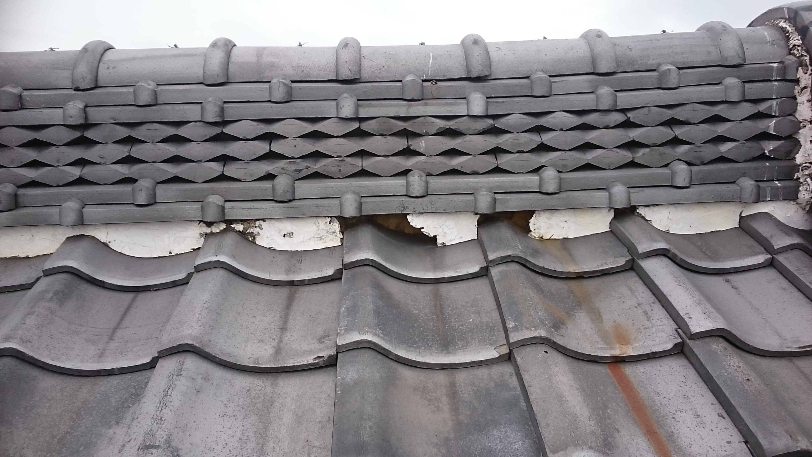 浜松市北区。平板瓦の漆喰塗り直し工事