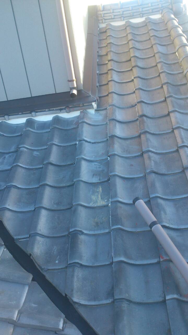 浜北区 雨漏り工事 谷樋交換工事・鬼瓦接着工事