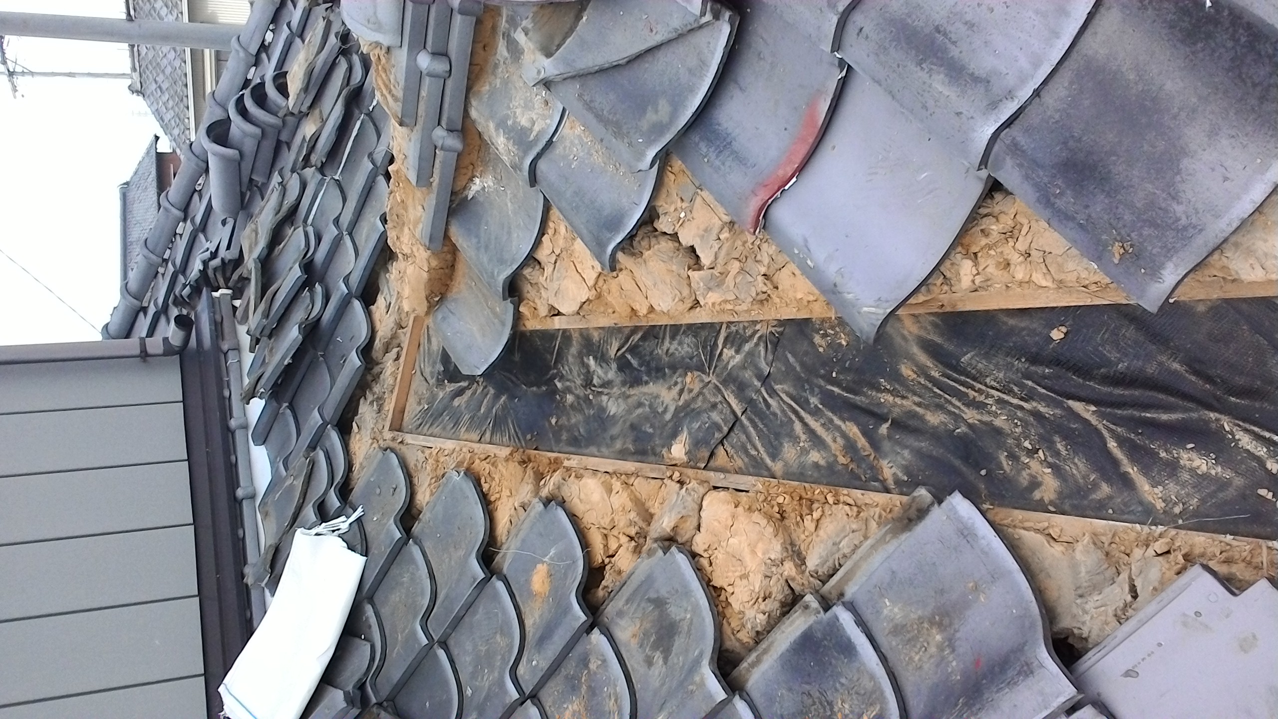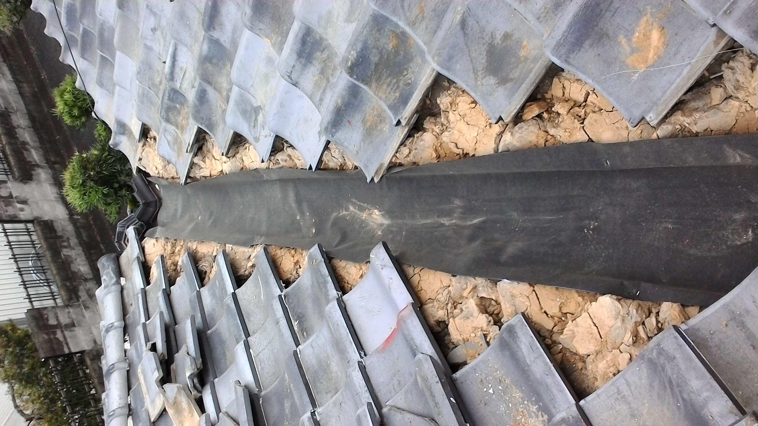 下地の土まで見えていると雨により土がえぐれてしまい棟が傾いたり崩れる可能性があり雨漏りの