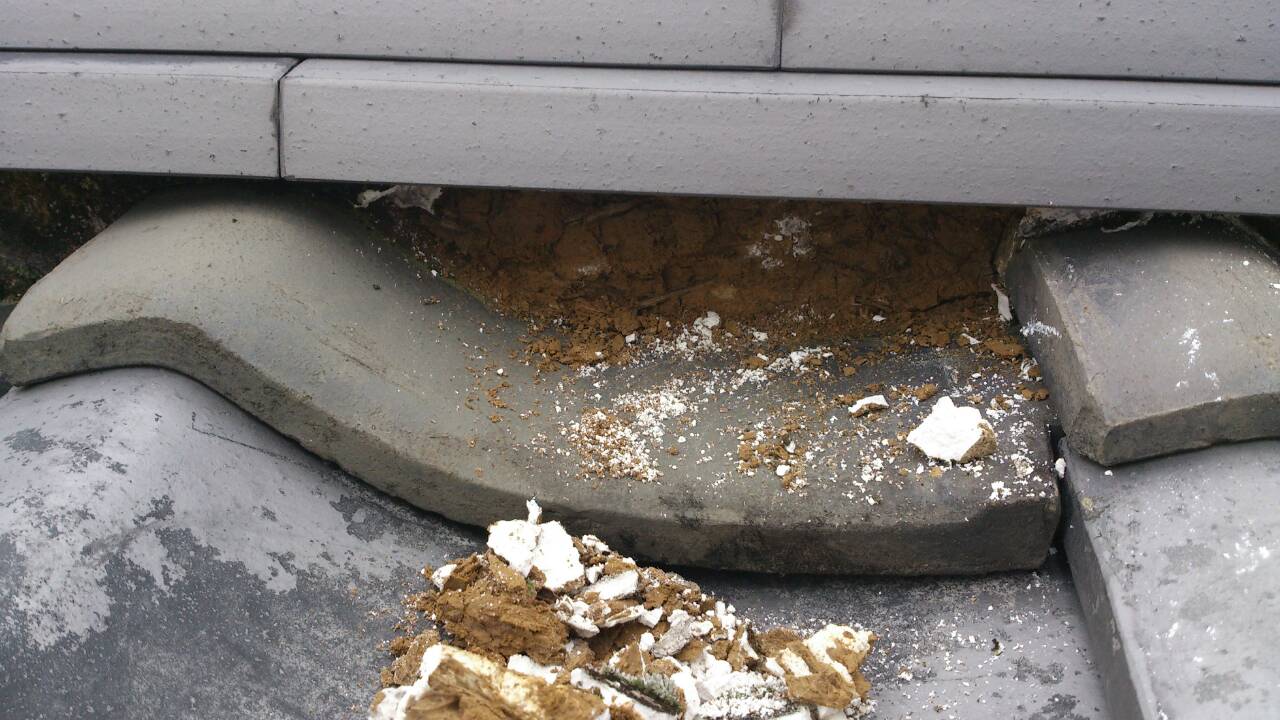 こんにちは!RoofTop村松です! 鳥の巣の掃除・隅棟の面戸をふさぐ工事です。 隣の新