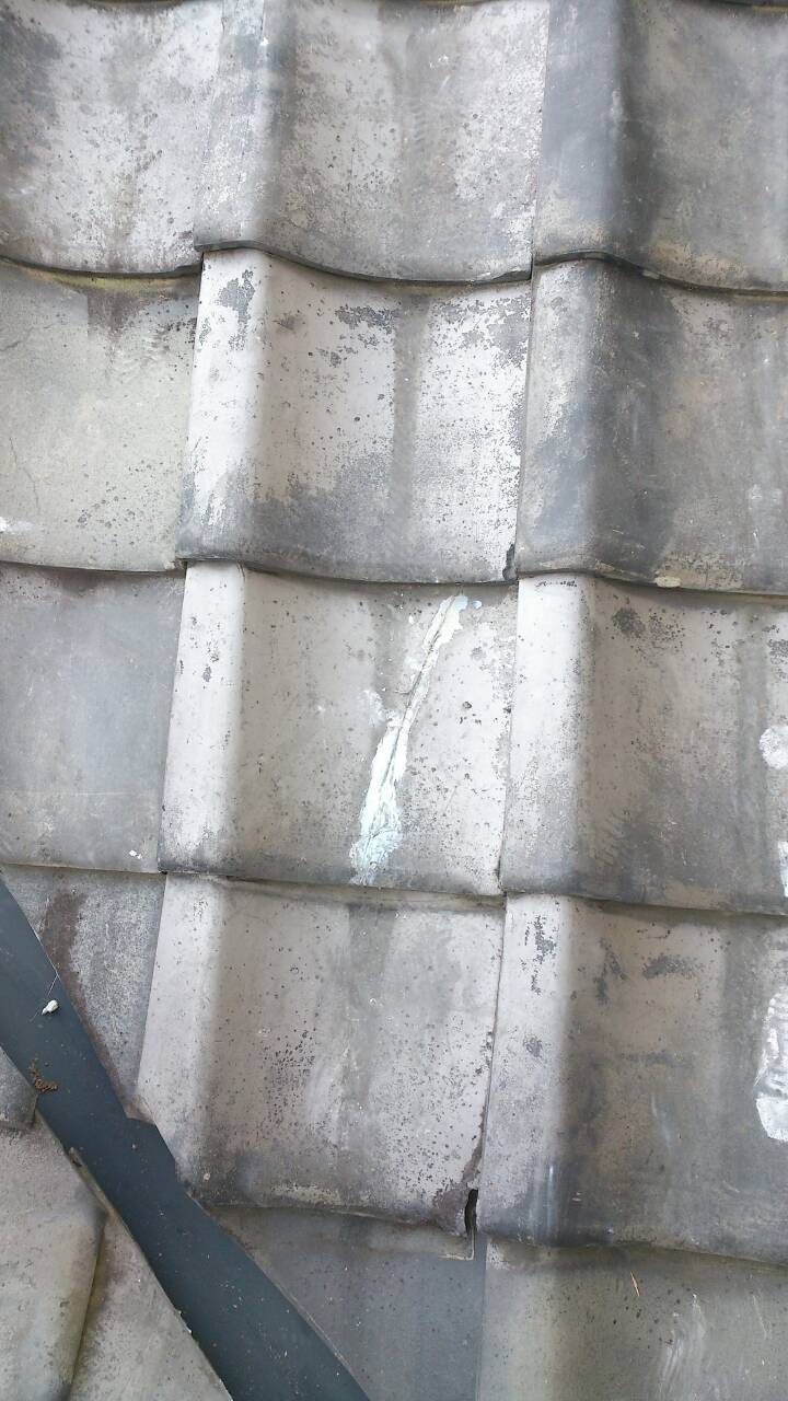 以前ほかの業者さんが屋根に乗ったときに割れたのを交換しないでとめたあとになります。