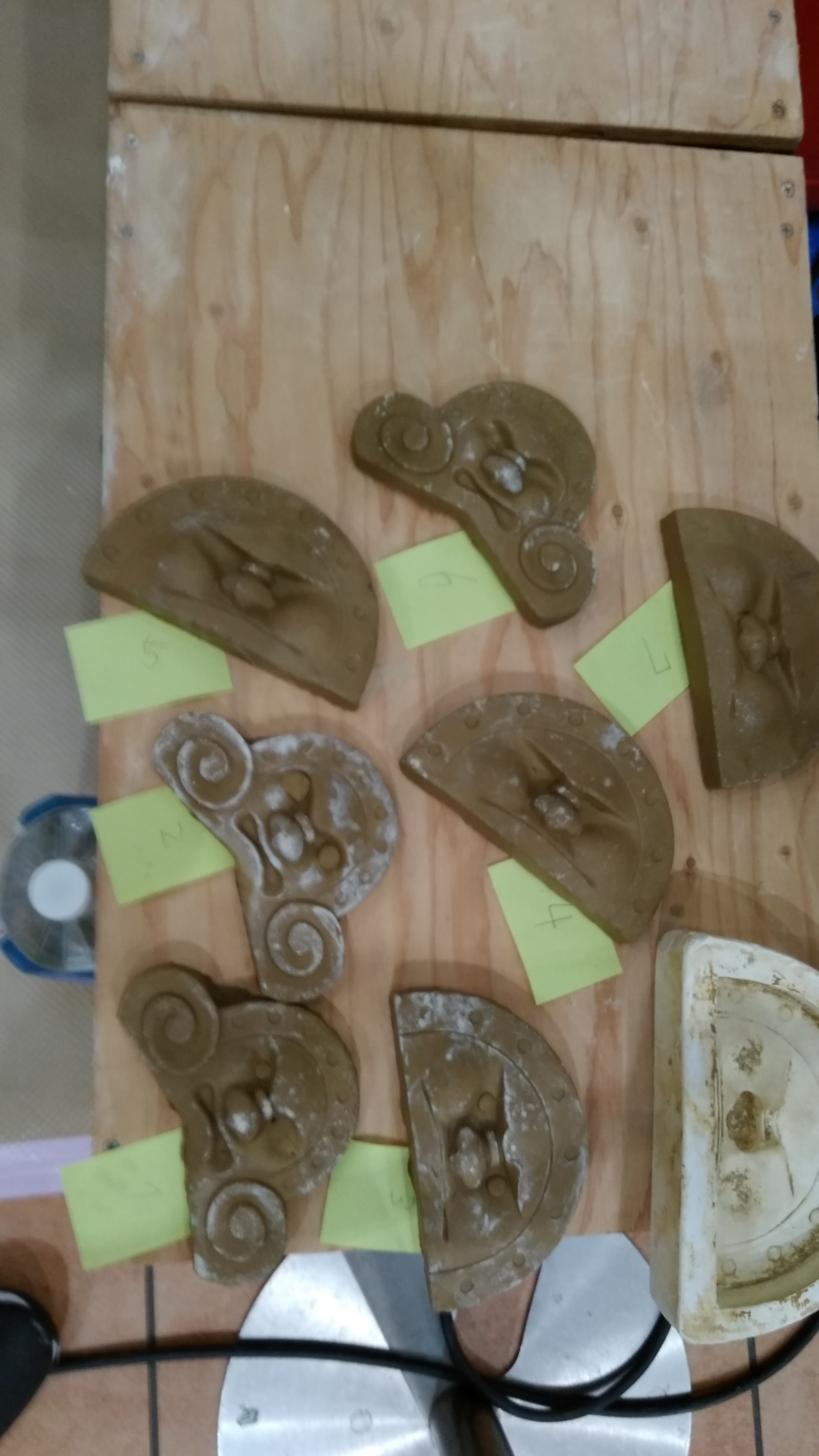 鬼瓦の顔の型に本物の瓦の土を親子で詰め、詰めた裏側には、好きな絵や名前日にちなど