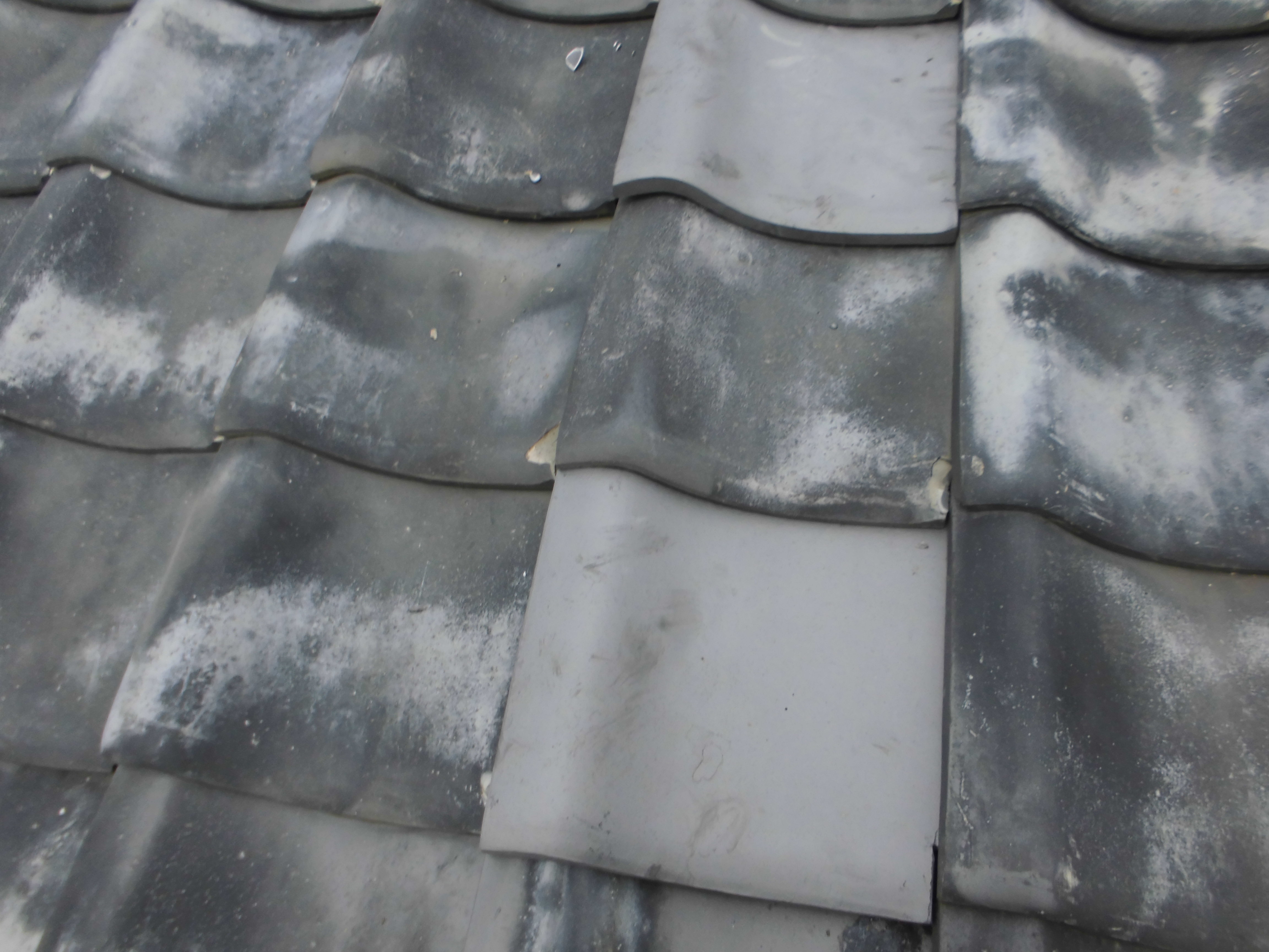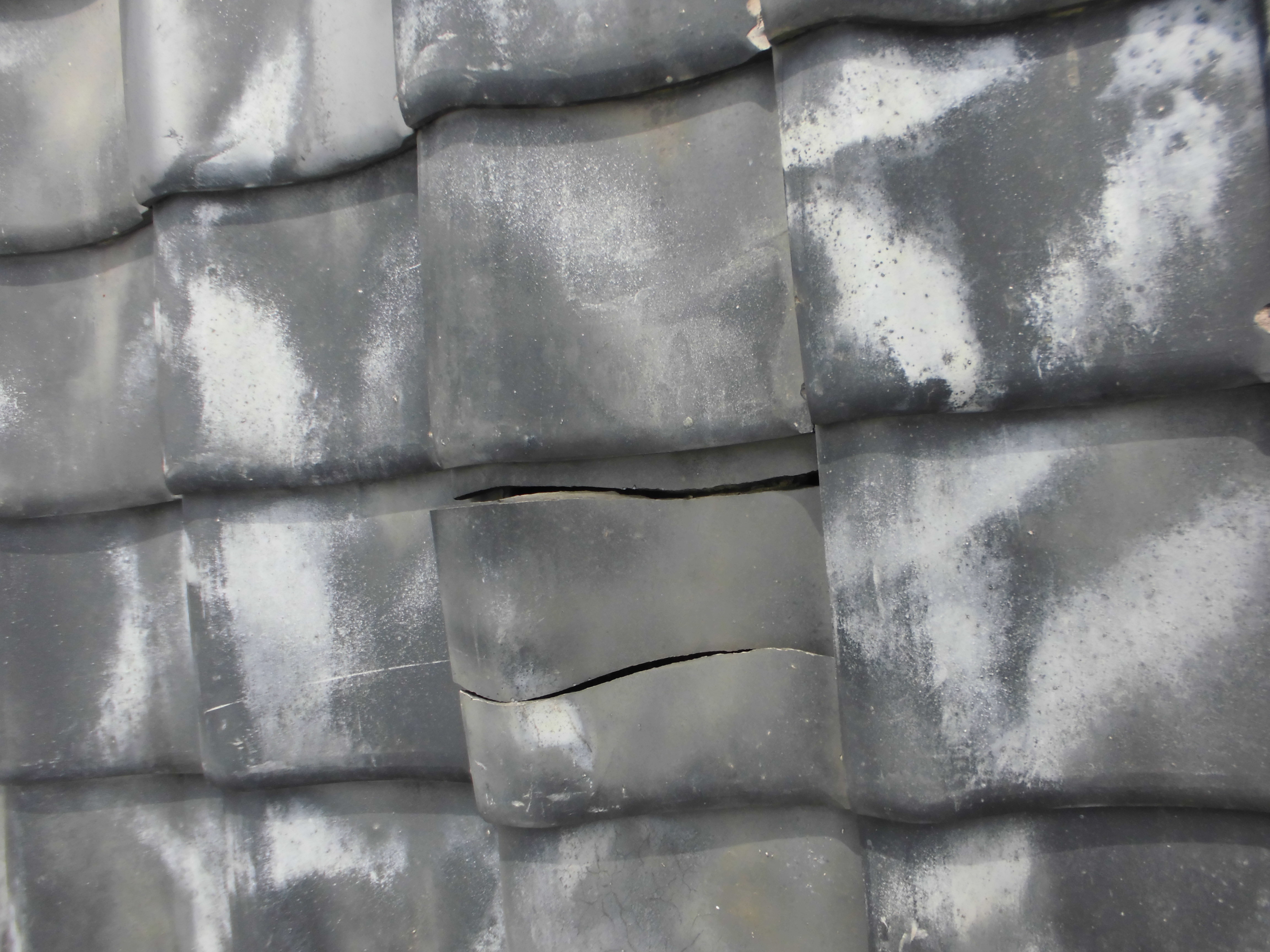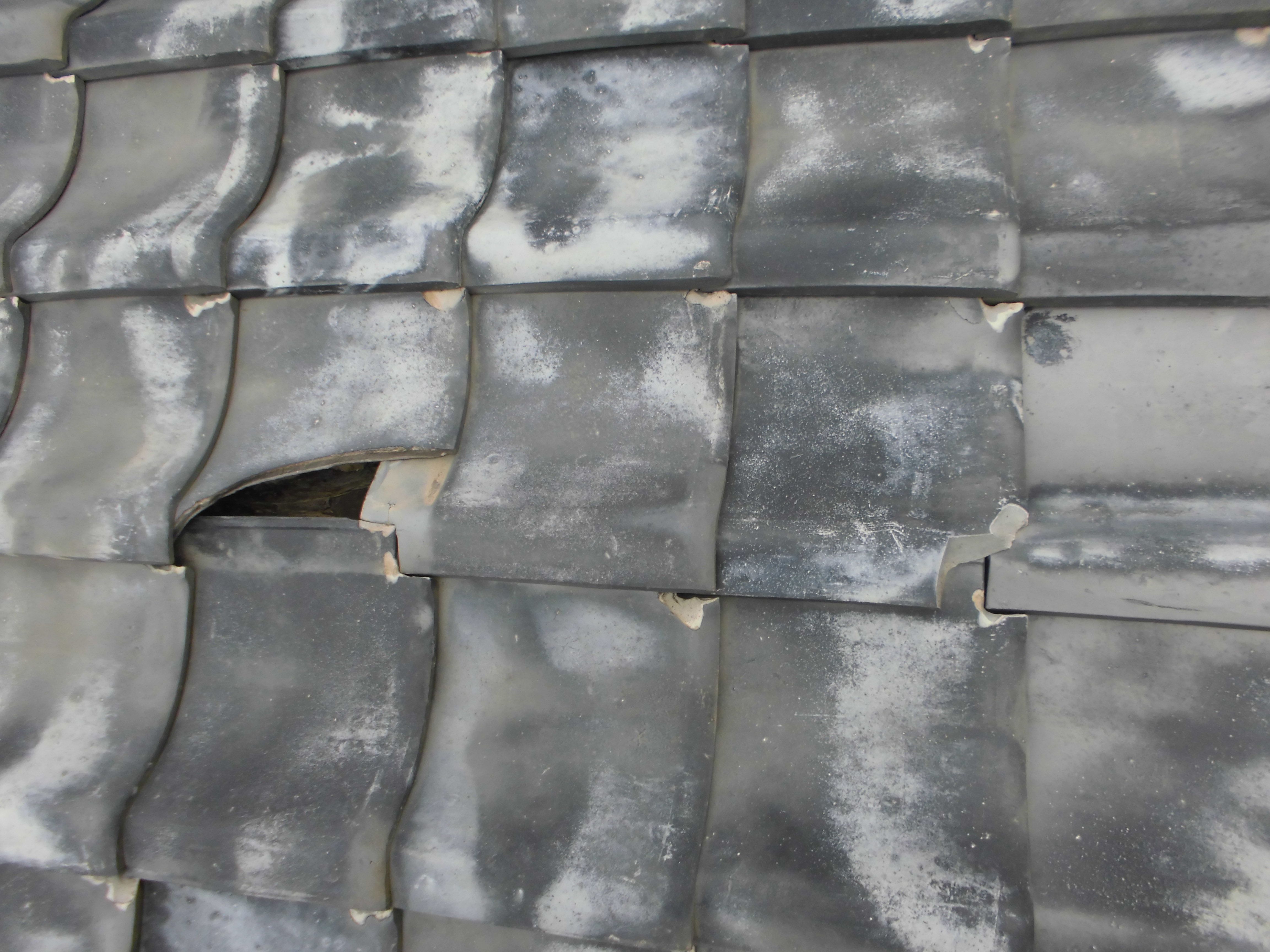 屋根に登らせてもらうと瓦が割れてなくなっていたり割れていたりしました。