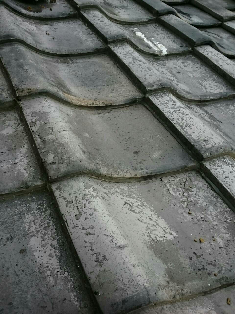 四角い瓦がたくさん並べてある平瓦の部分をかけてみると家の中の天井がぽつぽつと音がして、