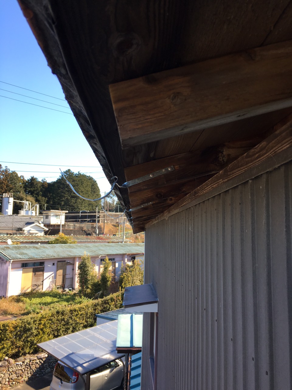 新しい金具に交換します。以前は釘で固定していた軒の金具はビスで固定するの抜けにくくなります!