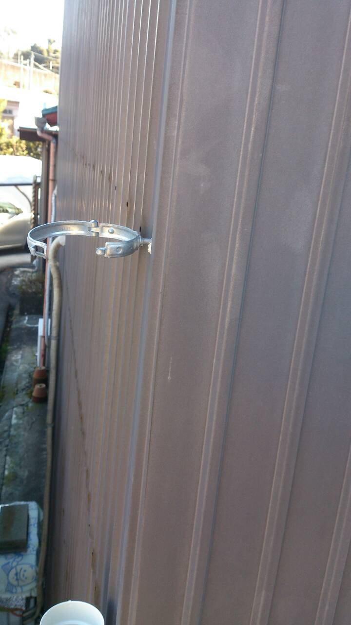 錆びていた縦の樋の金具も新品に交換します。