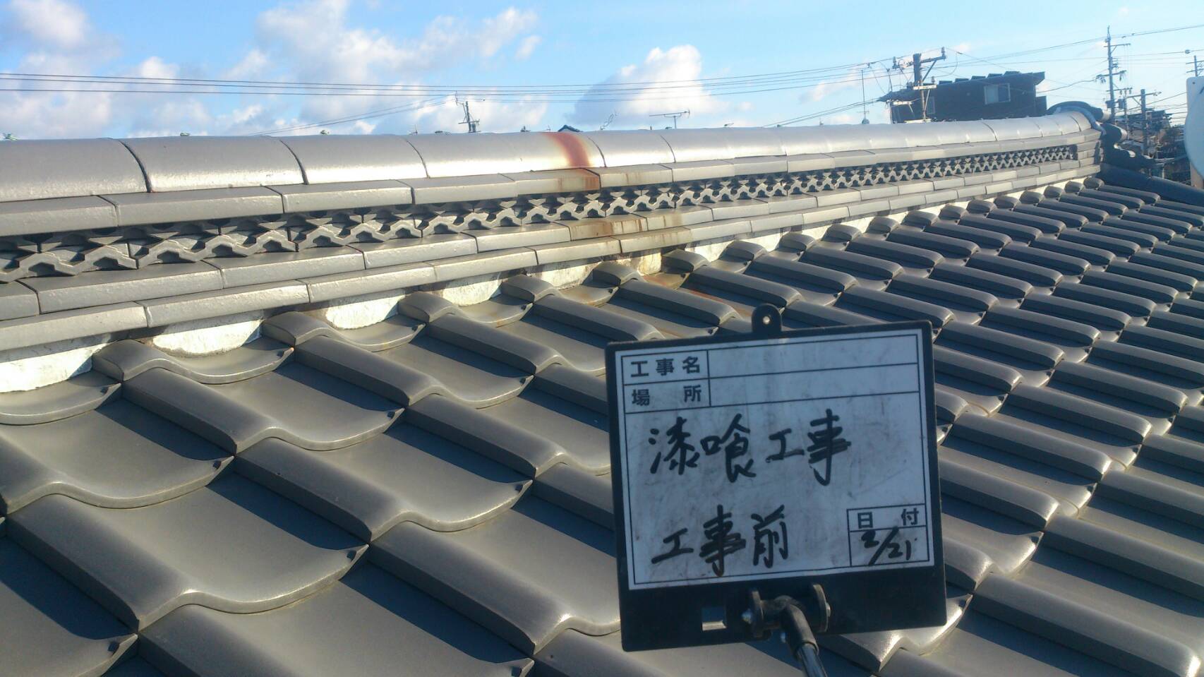 浜松市北区。平板瓦の漆喰塗り直し工事