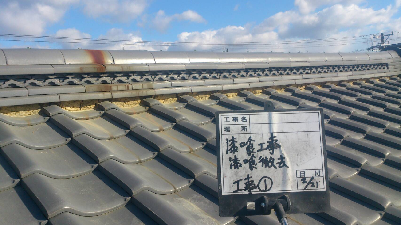 こんにちは!RoofTop村松です! スマホサイト 浜松市北区にて、平板瓦の漆喰のぬりな