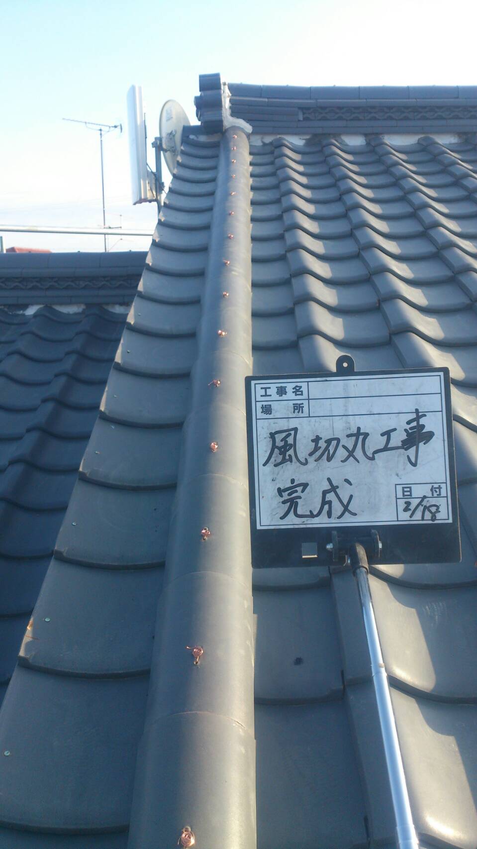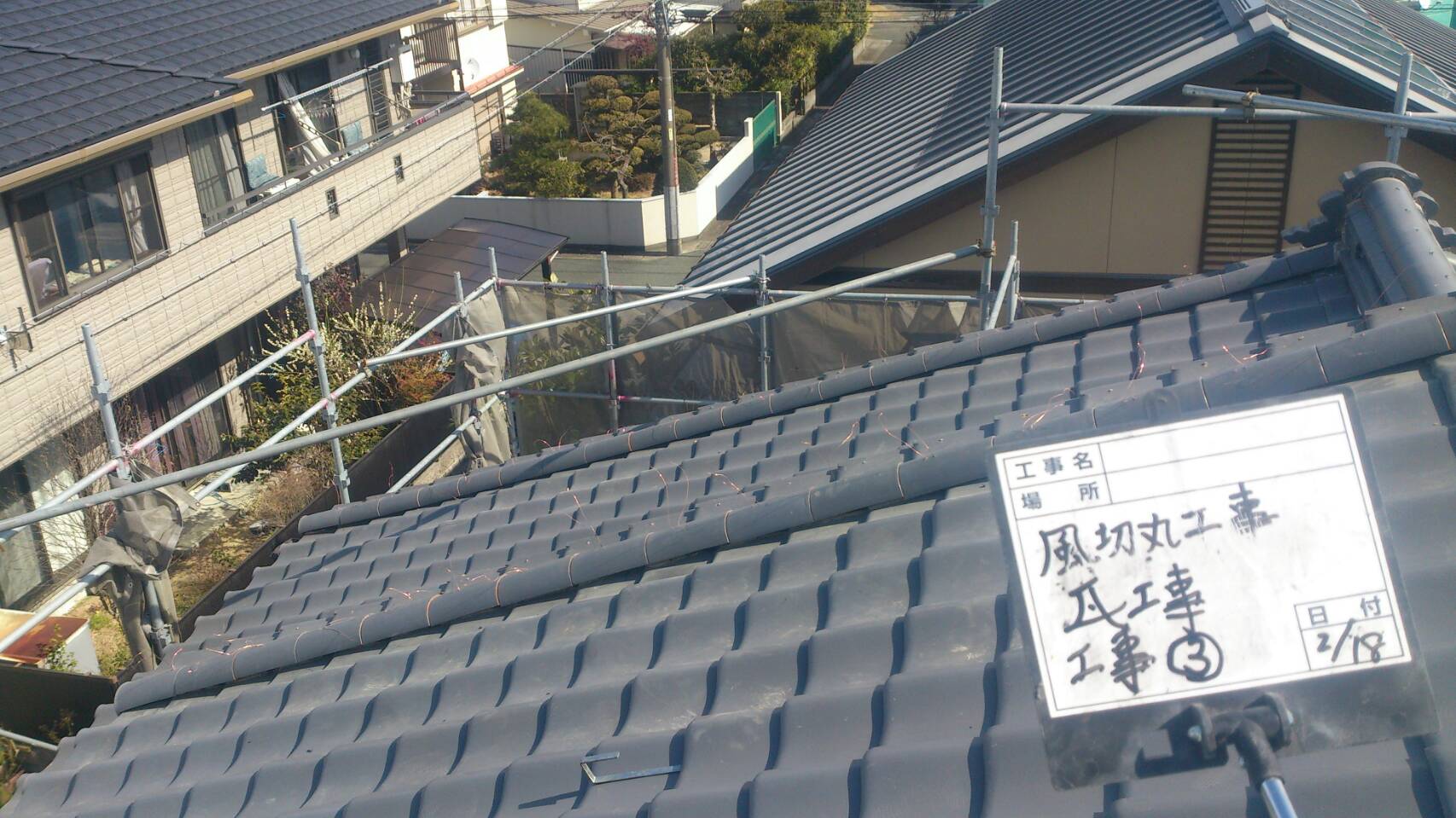 瓦を戻し、銅線を縛ったら完成です!