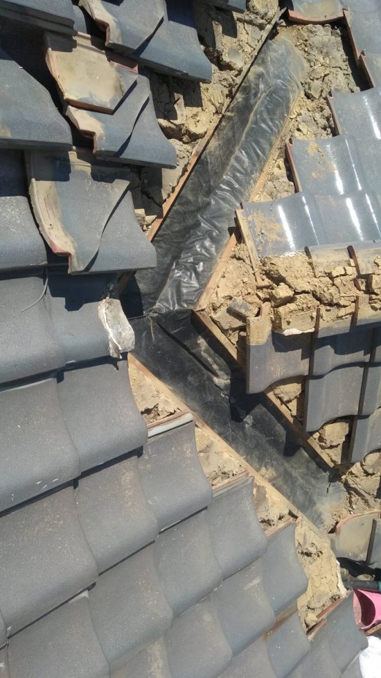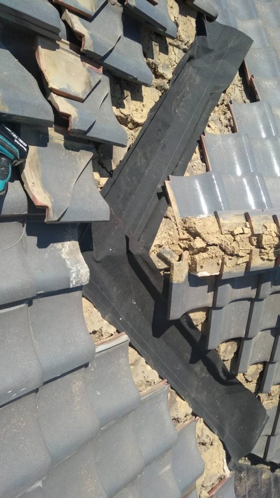 谷樋の交換の際は、可能ならば瓦を一度外させていただいています。