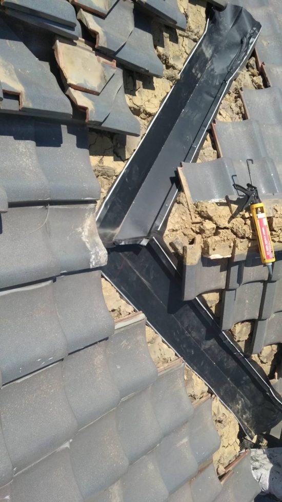 瓦と瓦の間の溝のような場所にある、谷板金の交換です。